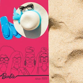 A toalha felpuda da coleção Barbie estampa toda a beleza e estilo. Seu tecido contém a exclusiva qualidade Lepper da felpa que nãodesfia, possui ótima absorção e se torna mais macio a cada lavagem, sem perder a intensidade das cores.É perfeita para tornar os momentos pós-banho, praia ou piscina ainda mais especiais.Estampa Since da Barbie: Com um design exclusivo da Barbie, essa toalha traz a adorável imagem das 4 Barbies de 1959confiantes de óculos de sol com o melhor estilo da épocaMedida: 70 cm x 1,35 mGramatura: 280g/m²55% Algodão 45% Poliéster