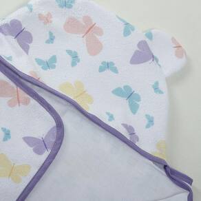 Medidas: 80 cm x 70 cm, tamanho ideal para envolver seu bebê com aconchego Forro de fralda 100% algodão: super absorvente e com toque delicado na pele sensível Diversas estampas divertidas e delicadas: para todos os estilos e gostos Capuz com orelhinhas: charme extra e proteção para a cabecinha do bebê Acabamento premium: maciez, durabilidade e excelente absorção