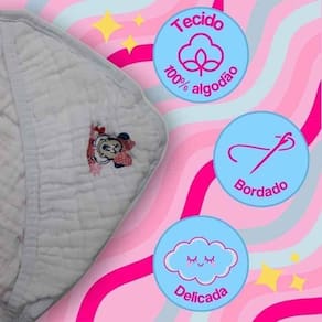 Com bordado Acabamento em viés e malha Tamanho 85x85cm Marca Disney Tecido quadriculado duplo 100% algodão Um produto considerado Luxo, pela alta qualidade Marca: Dugu