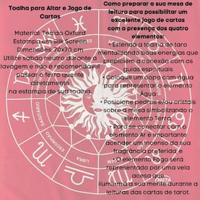 Toalha Jogo de Cartas Zodíaco 70 x 70 cm Vermelha Toalha Jogo de Cartas Zodíaco 70 x 70 cm Vermelha A Toalha Jogo de Cartas Zodíaco da Bialluz é ótima para te auxiliar durante o jogo de cartas, por ser um elemento que proporciona alta elevação enérgica. Você também pode usar para decorar seu altar, com certeza ficara ainda mais lindo e com muita energia positiva. Nossa toalha possui altíssima qualidade na impressão com pontos de brilho e é confeccionada em tecido oxford que não amassa e tem longa durabilidade. Enviamos a sua toalha em até 24 horas após a confirmação de pagamento Dimensões aproximadas:Altura: 70 cmLargura: 70 cm Tecido: Oxford Caso tenha alguma dúvida nos mande mensagem que respondemos rapidinho para te ajudar da melhor forma possível Desejamos boa sorte em seu jogo Marca: Meta Atacado