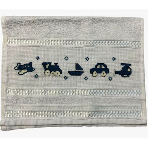 Toalha Lavabo Ponto Cruz com Borbado da Vovó Alice Veículos Branco -