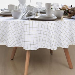 Toalha Mesa Naturale Limpeza Prática 1,80M Redonda Grid Bege
