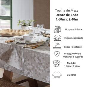 Contém: 01 peça 01 toalha de mesa retangular 1,60x2,40m Estampa/cor: dente de leão bege