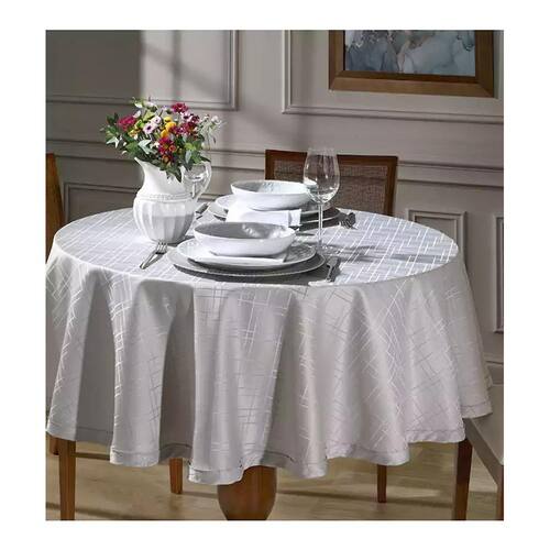 A coleção Requinte é produzida no Brasil em 100% Poliéster pela marca Dohler. Essa toalha de mesa traz a praticidade para o seu dia a dia. A toalha de mesa é indicado para mesa redonda de 6 lugares e contém medidas de 1,60m raio. Produzido em 100% Poliéster com detalhes em Jacquard. Medida: 1,60 m Composição: 100% Poliéster