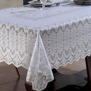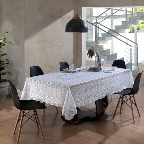 A toalha de mesa retangular renda interlar clássica branca arabesco leva a beleza da renda para sua mesa e deixa o momento da refeição em família ainda mais agradável. Seu tema arabesco leva para sua mesa todo o requinte e delicadeza dos desenhos, deixando suas refeições mais especiais.