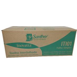 Toalha de Papel Inovatta Folha Simples Interfolha 2400 folhas 10x240fl Papel Toalha para mãos InterfolhadaFolha Simples INOVATTAITI 01Característica do ProdutoEste produto é produzido com 100% FIBRAS VIRGENS 100% Celulose não transgênicas.Possui excelente alvura e maciez, bem como boas propriedades de resistência ao estadoÚmido e exclusiva tecnologia que deixa o papel muito mais macio e mais absorvente. NãoCausa irritações dérmicas.Código ITI 01 - INOVATTA Toalha Interfolhada Folha Simples Cor BrancoGramatura / Alvura 34 - 36g/m Largura da Folha 220 mmComprimento da Folha 216 mmValidade Indeterminado - Produto não perecívelTipo de Embalagem Pacote plástico totalmente fechado Marca: Santher Professional