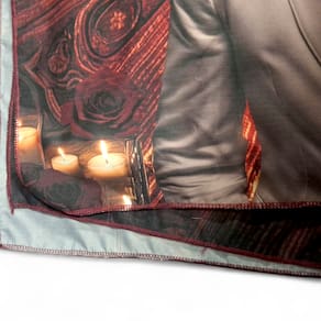 Toalha elemental para tarô com excelente acabamento, impressão de altíssima qualidade com pontos de brilho que proporcionam uma aura mágica especial para o jogo.