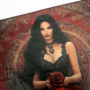 Toalha elemental para tarô com excelente acabamento, impressão de altíssima qualidade com pontos de brilho que proporcionam uma aura mágica especial para o jogo.