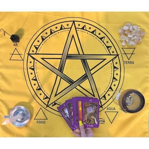 A Toalha Tecido Jogo de Cartas Pentagrama da Bialluz são ótimas para te auxiliar durante o jogo de cartas, por ser um elemento que proporciona alta elevação enérgica. Você também pode usar para decorar seu altar, com certeza ficara ainda mais lindo e com muita energia positiva. Nossa toalha possui altíssima qualidade na impressão com pontos de brilho e é confeccionada em tecido oxford que não amassa e tem longa durabilidade.