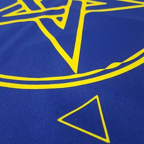Dentre os inúmeros símbolos criados pelo homem, se destaca o pentagrama, que evoca uma simbologia múltipla, sempre fundamentada no número 5, que exprime a união dos desiguais. As cinco pontas do pentagrama põem em acordo, numa união fecunda, o 3, que significa o princípio masculino, e o 2, que corresponde ao princípio feminino. O pentagrama sempre esteve associado com o mistério e a magia. Ele é a forma mais simples de estrela, que deve ser traçada com uma única linha, sendo conseqüentemente chamado de "Laço Infinito". A toalha forma o solo sagrado para práticas ritualísticas, criando assim uma ligação entre você e o universo.