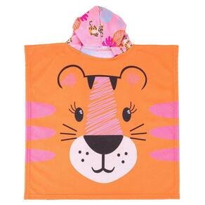 Perfeita para os momentos na praia e piscina, a toalha poncho tigre coral é a peça ideal para secar e vestir as pequenas com conforto e estilo.