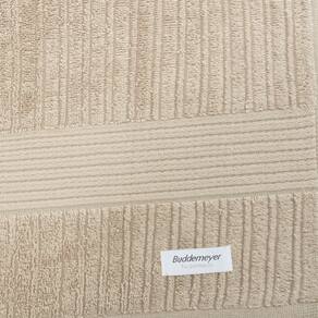 100% algodão fio penteado: maciez, resistência e durabilidade. Design canelado elegante com detalhe de barra delicada. Pré-lavada e pré-encolhida: praticidade e segurança no uso. Acabamento premium Buddemeyer: brilho natural e absorção eficiente.