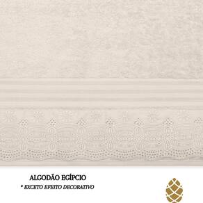Toalha felpuda com aplicação de Renda Bordada. A delicadeza da renda aplicada na toalha confere ao produto um visual requintado.