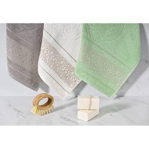 Toalha rosto taj 50x70cm mint cavhome Taj A toalha taj faz referência ao taj mahal, uma das sete maravilhas do mundo moderno situado na índia, um monumento conhecido pela sua nobreza. Essa toalha possui super maciez e excelente absorção, com detalhes em seu barrado carrega consigo desenhos majestosos para que seu ambiente fique ainda mais elegante. Ela é produzida com fio 100% algodão convencional de dupla torção, proporcionando melhor absorvência e suavidade. Seu corpo e barrado possuem lindos desenhos arabescos em fio metalizado dourado. Devido seu acabamento sofisticado em jacquard, é considerado um tecido nobre em razão de sua complexidade na produção. As toalhas da cavhome são conhecidas por serem intensamente perfumadas e macias, elas possuem um acabamento de amaciante hidrófilo que além de proporcionar melhor absorção, garantem o conforto necessário após um banho relaxante, será como um abraço