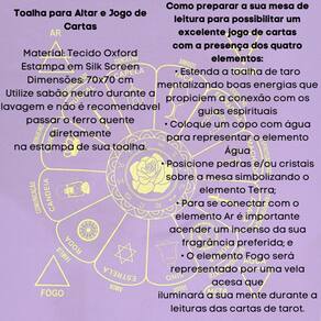 Toalha Cigana da Bialluz é ótima para te auxiliar durante o jogo de cartas, por ser um elemento que proporciona alta elevação enérgica. Você também pode usar para decorar seu altar, com certeza ficara ainda mais lindo e com muita energia positiva. Nossa toalha possui altíssima qualidade na impressão com pontos de brilho e é confeccionada em tecido oxford que não amassa e tem longa durabilidade.