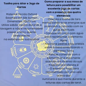 A Toalha Tecido Jogo de Cartas Cigana Santa Sara da Bialluz é ótima para te auxiuliar durante o jogo de cartas, por ser um elemento que proporciona alta elevação enérgica. Você também pode usar para decorar seu altar, com certeza ficara ainda mais lindo e com muita energia positiva. Nossa toalha possui altíssima qualidade na impressão com pontos de brilho e é confeccionada em tecido oxford que não amassa e tem longa durabilidade.