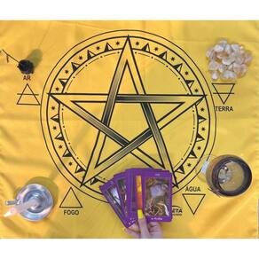 A Toalha Tecido Jogo de Cartas Pentagrama da Bialluz é ótima para te auxiliar durante o jogo de cartas, por ser um elemento que proporciona alta elevação enérgica. Você também pode usar para decorar seu altar, com certeza ficara ainda mais lindo e com muita energia positiva. Nossa toalha possui altíssima qualidade na impressão com pontos de brilho e é confeccionada em tecido oxford que não amassa e tem longa durabilidade.