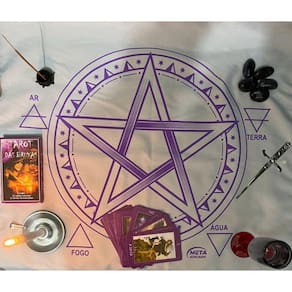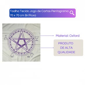 A Toalha Tecido Jogo de Cartas Pentagrama da Bialluz é ótima para te auxiliar durante o jogo de cartas, por ser um elemento que proporciona alta elevação enérgica. Você também pode usar para decorar seu altar, com certeza ficara ainda mais lindo e com muita energia positiva. Nossa toalha possui altíssima qualidade na impressão com pontos de brilho e é confeccionada em tecido oxford que não amassa e tem longa durabilidade.