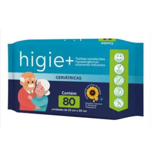 As toalhas umedecidas Higie+ são um produto de higiene pessoal desenvolvido para adultos, contendo 80 unidades por pacote. Essas toalhas são projetadas para ajudar a limpar a pele de forma suave e eficaz.