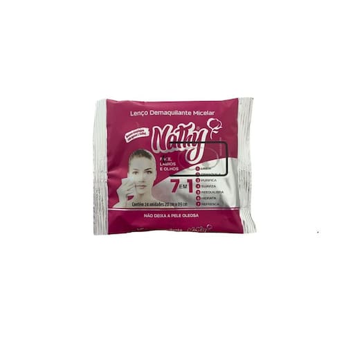 Lenço Demaquilante Micelar 24 UND. Pensando nos cuidados com a pele delicada do resto a linha de Toalha Umedecida Nathy criou o Lenço Demaquilante Micelar Nathy, desenvolvido para remoção de maquiagem com eficácia, hidratação e refrescância. Modo de Usar: Lava bem as mãos antes de manusear o produto: 1- Abra a etiqueta autoadesiva no local indicado; 2- Retire a primeira toalinha puxando pelo centro; 3- Utilize a toalinha no local desejado; 4- Após o uso, feche a etiqueta autoadesiva. Precauções: Uso externo. Deve ser aplicado por adulto ou sob supervisão. Não usar na pele irritada ou lesionada. Em caso de alergia a algum componente da fórmula, suspender o uso e procurar orientação médica. Evitar o contato com os olhos, se houver contato, lave com água em abundância. Não ingerir. Manter o produto fora do alcance das crianças e animais domésticos. Recomendações: Mantenha a embalagem bem fechada, em lugar seco, fresco e ao abrigo da luz solar. Composição: Aqua / Água. Disodium EDTA / EDTA Dissódico. PEG-40 Hidrogenated Castor Oil / Óleo de rícino hidrogenado. Disodium cocoamphodiacetate / Cocoanfodiacetato díssodico. Hexylene Glycol / Hexilenoglicol, Benzyl Alcohol / Alcool Benzílico. Características: Medidas: Profundidade: 20cm Largura: 9cm Ean: 7898136151443