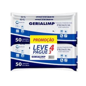 Toalha Umedecida Gerialimp Premium com 4 Pacotes de 50 Unidades cada