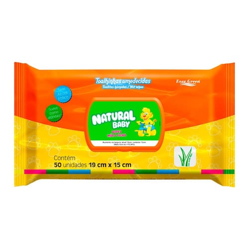 Toalhinhas Umedecidas Natural Baby - 50 Unidades Cuide da pele delicada do seu bebê com as Toalhinhas Umedecidas Natural Baby, idealmente desenvolvidas para proporcionar conforto e praticidade. Suaves como algodão, essas toalhinhas vêm enriquecidas com aloe vera e são completamente livres de álcool etílico, garantindo uma limpeza eficaz e suave, sem causar irritações. A embalagem com 50 unidades tem o tamanho ideal (19cm x 15cm), sendo perfeita para o uso diário e para levar na bolsa maternidade. Com Natural Baby, você oferece carinho e proteção, mantendo seu pequeno sempre fresquinho e limpo, de maneira segura e confortável.
