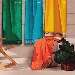Com seus desenhos em jacquard, a Toalha de Praia Beach oferece um toque aveludado em todo o seu corpo com maciez sem igual, já a sua composição 100% algodão (exceto barra decorativa) garante uma experiência única nos dias de verão.