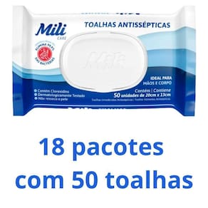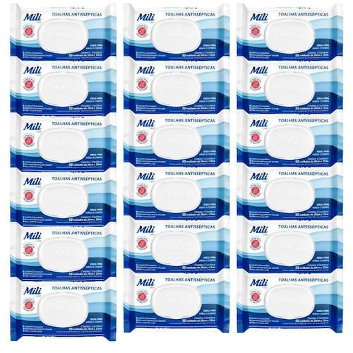 Toalhas Antissépticas Mili 18 Pacotes C/ 50 (total: 900 Toalhas)-sem álcool