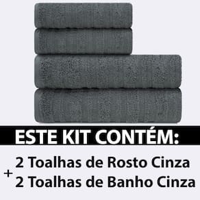 Este kit contém: - 02 Toalhas de Banho com medidas de 77 cm X 140 cm - 02 Toalhas de Rosto com medidas de 48 cm X 90 cm