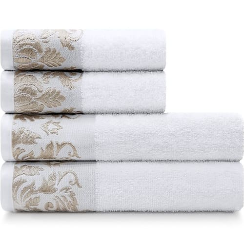 Super confortável, a coleção de toalhas Viena adiciona um toque de glamour ao seu banheiro com sua barra decorativa em fios dourados.