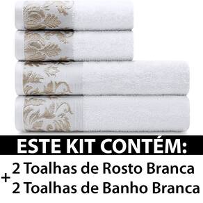 Este kit contém: - 02 Toalhas de Banho com medidas de 75 cm X 130 cm - 02 Toalhas de Rosto com medidas de 48 cm X 75 cm