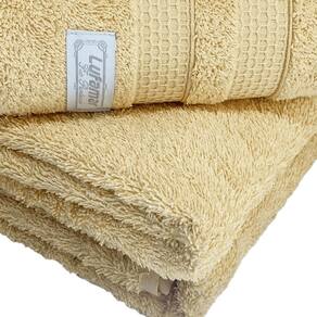 As toalhas de banho possuem dimensões padrão de 70x140 cm, ideal para uso diário. Já as toalhas de rosto medem 50x80 cm, perfeitas para a higiene facial.