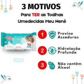 As Toalhas Umedecidas Meu Nenê 20x13cm Com 70Un são a escolha ideal para o cuidado diário e a higiene da pele sensível do bebê. Desenvolvidas com muito carinho e ingredientes de alta qualidade, elas oferecem uma limpeza eficaz enquanto protegem e hidratam, prevenindo o ressecamento e as indesejadas assaduras.