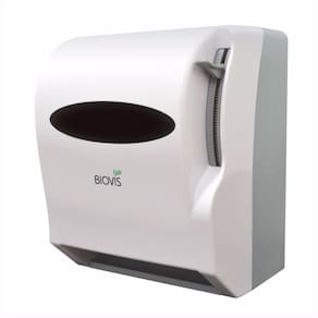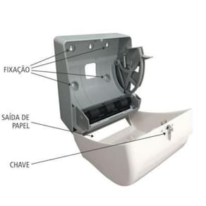 Dispenser toalheiro Luna papel toalha Toalheiro de papel toalha de bobina com acionamento por alavanca. Em plastico ABS. Com visor e trava. ESPECIFICAÇÕES TÉCNICAS: Capacidade: rolo 20cm x 200m Matéria Prima: Plastico ABS Linha de produtos: Branca ou LUNA Acionamento: Manual por alavanca Dimensões: A: 33cm L: 27cm C: 23cm Cor: branco Peso: 1,680 Kg ITENS INCLUSOS: 01 Dispenser 01 chave de aço 04 parafusos 04 buchas para fixação Marca: Não Informado Ean: 7898599160709
