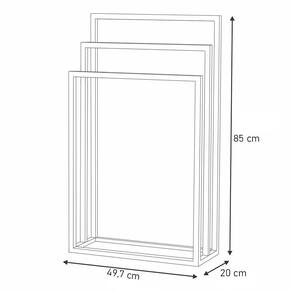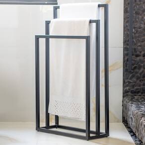 Características do Produto Material dos Suporte: Aço. Capacidade de Toalhas: 3 Toalhas. Acabamento: Pintura Epóxi. Escala de Brilho: Fosco. Diferenciais: - Design moderno. - Base de aço. Sistema de Montagem: O produto vai montado. Volumes: 1 Volume. Conteúdo da Embalagem: 1 Suporte de toalhas. Garantia do Fabricante: 90 dias contra defeito de fabricação. Montagem: Recomendamos que seja feita por um profissional. Recomendação de Limpeza: Utilize pano úmido.