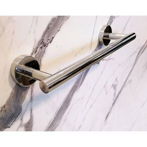 Modelo: Toalheiro de Rosto Redondo Cromado Altura: 3 cm Comprimento: 27 cm Profundidade: 7,5 cm Material: Inox 304