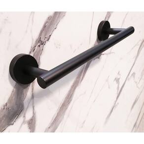 Modelo: Toalheiro de Rosto Redondo Preto Altura: 3 cm Comprimento: 27 cm Profundidade: 7,5 cm Material: Inox 304