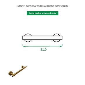 Modelo: Toalheiro de Rosto Redondo Altura: 5,3 cm Comprimento: 31 cm Largura: 8 cm Material: Inox 304 Cor: Rose Gold Escovado Acabamento: Fosco