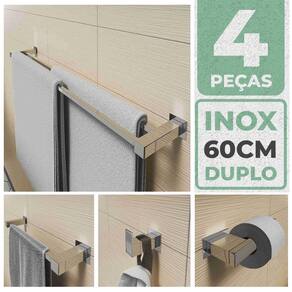 Toalheiro Duplo Inox 304 + Kit Acessórios Banheiro 60Cm