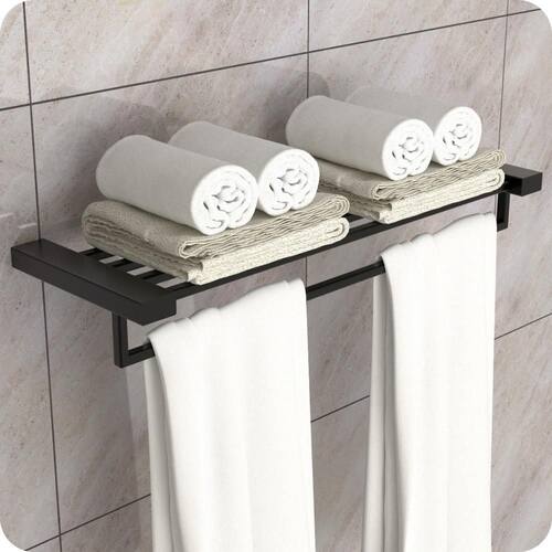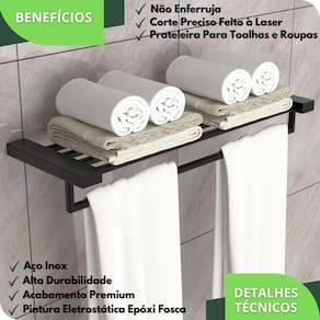 Banheiros modernos exigem produtos de qualidade. Prezando pela sofisticação e elegância, desenvolvemos o Toalheiro Hotel de Parede Toalheiro Hotel de Parede Porta Toalha Duplo Preto Master, onde cada traço foi cuidadosamente desenhado para deixar seu banheiro com um visual clean e sofisticado. Com um design minimalista, o preferido pelos arquitetos nos últimos tempos, o Porta Toalha de Hotel é fabricado utilizando Aço Inox com acabamento em Pintura Eletrostática Epóxi proporcionando maior durabilidade, resistência e garantindo que não ocorrerá oxidação nem ferrugem. O sistema de fixação garante mais firmeza ao produto e mais estabilidade, evitando que a peça se desloque de um lado para a outro. BENEFÍCIOS Acabamento Premium: Corte Realizado à Laser Material de Aço Inox Resistente a Água Não Enferruja e Não Sofre Oxidação Prateleira Para Toalhas e Roupas ESPECIFICAÇÕES TÉCNICAS Material: Aço Inox Acabamento: Pintura Eletrostática Epóxi Cor: Preto Fosco MEDIDAS Altura: 7cm Largura: 60cm Profundidade: 16cm ITENS INCLUSOS 1 Porta Toalha de Hotel Parafusos e buchas para instalação