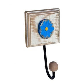 Toalheiro Madeira Ferro Banheiro Flor Branca Cor Azul