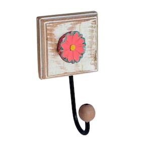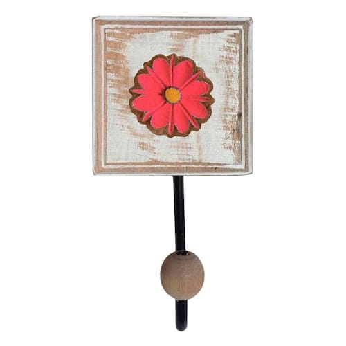 Toalheiro Madeira Ferro Banheiro Flor Branca Cor Vermelho