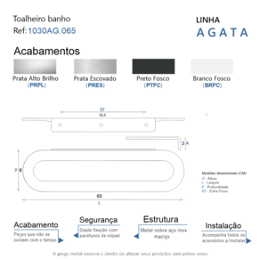 Toalheiro Para Banheiro Escovado Agata Grego Metal 65cm