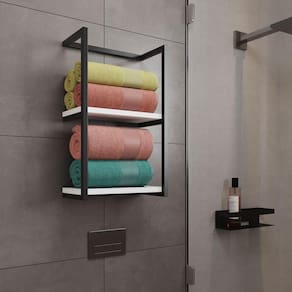 Toalheiro Para Banheiro Estilo Industrial Sahy - Preto E Prateleira Branca
