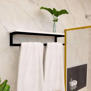 Esse suporte para toalha de metalon com prateleira de MDF branco é uma escolha prática e estética para organizar toalhas no banheiro, proporcionando funcionalidade com um design moderno.