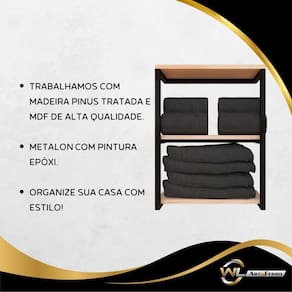 Este toalheiro de parede é uma excelente escolha para um salão de beleza, combinando durabilidade e elegância. A estrutura de metalon com pintura eletrostática oferece resistência e um acabamento liso, enquanto as prateleiras de madeira natural de pinus, com acabamento em verniz, proporcionam um toque de sofisticação e naturalidade. Ideal para organizar toalhas e produtos de beleza, mantendo o espaço funcional e esteticamente agradável.