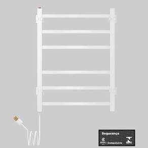 Os toalheiros elétricos seccare contam com o que há de mais tecnológico no mercado, trazendo requinte e elegância para o ambiente. São inúmeras vantagens ao adquirir um toalheiro elétrico seccare, toalhas sempre secas e aquecidas, desumidificação e aquecimento do ambiente. Material feito de aço carbono pintado, Potência de 90 Watts e Voltagem de 127 V. Para facilitar a instalação dos produtos, o manual vem com ilustrações de como proceder. O produto resiste à agressividade encontrada no ambiente do banheiro. A potência de cada aparelho faz com que a temperatura seja ideal para secar toalhas. Todas as potências dos modelos de toalheiros são especificadas para uma temperatura, em média, de 35 graus célsius (C). Os componentes elétricos são isolados, não havendo possibilidade de choque elétrico ou a queima das toalhas (não se recomenda o uso de tecidos à base de nylon), levando em consideração uma instalação adequada. Quanto à manutenção, apenas indicamos a utilização frequente dos produtos e sua limpeza regular apenas com pano úmido e/ou álcool.