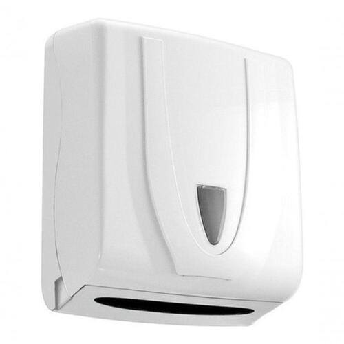 Descrição do produtoToalheiro Unik em ABS para papel interfolha 2 ou 3 dobras com detalhe branco.Injetado em plástico ABS branco, possui visor cristal transparente para controle de reposição do papel.O fechamento do suporte é realizado por meio de trava localizada no fundo do suporte o que dispensa o uso de chave.Acompanha kit contendo buchas e parafusos para fixação do suporte na parede.Disponível na cor: BrancaCapacidade: 600 folhas aproximadamente.Medidas: 305mm (altura) x 250mm (largura) x 132mm (profundidade).