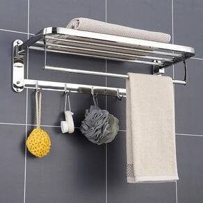 Toalheiro Varal Inox Dobravel Prateleira Suporte Gancho Luxo Porta Toalha Multiuso - Prático e Espaçoso