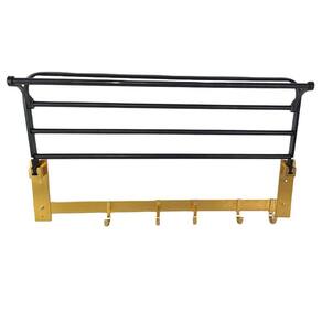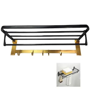 Esse produto para quem tem pouco espaço de armazenamento, é facil de instalar e muito simples. Feito de alumínio de alta qualidade, é durável e resistente.Dobrável, economiza espaço, suporte até 15kg e ganchos para guardar e secar suas toalhas. Você pode movimentar os ganchos da forma que achar melhor.Perfeito para banheiro, lavanderia, ou qualquer lugar da casa ou hotel, onde um toalheiro é necessário.Características:Porta ToalhaMultiuso5 Ganchos MovíveisDobrávelPrateleiraSuporta até 10kgMaterial: AlumínioCor: Preto e DouradoDimensões Aproximadas:Comprimento total: 58cmAltura: 14cmProfundidade: 18cmComprimento do suporte dobravel: 53cmConteúdo da embalagem01x Prateleira01x Kit de Buchas e Parafusos3 Meses de Garantia Contra Defeito de Fabricação***640 MOD: BSL3412